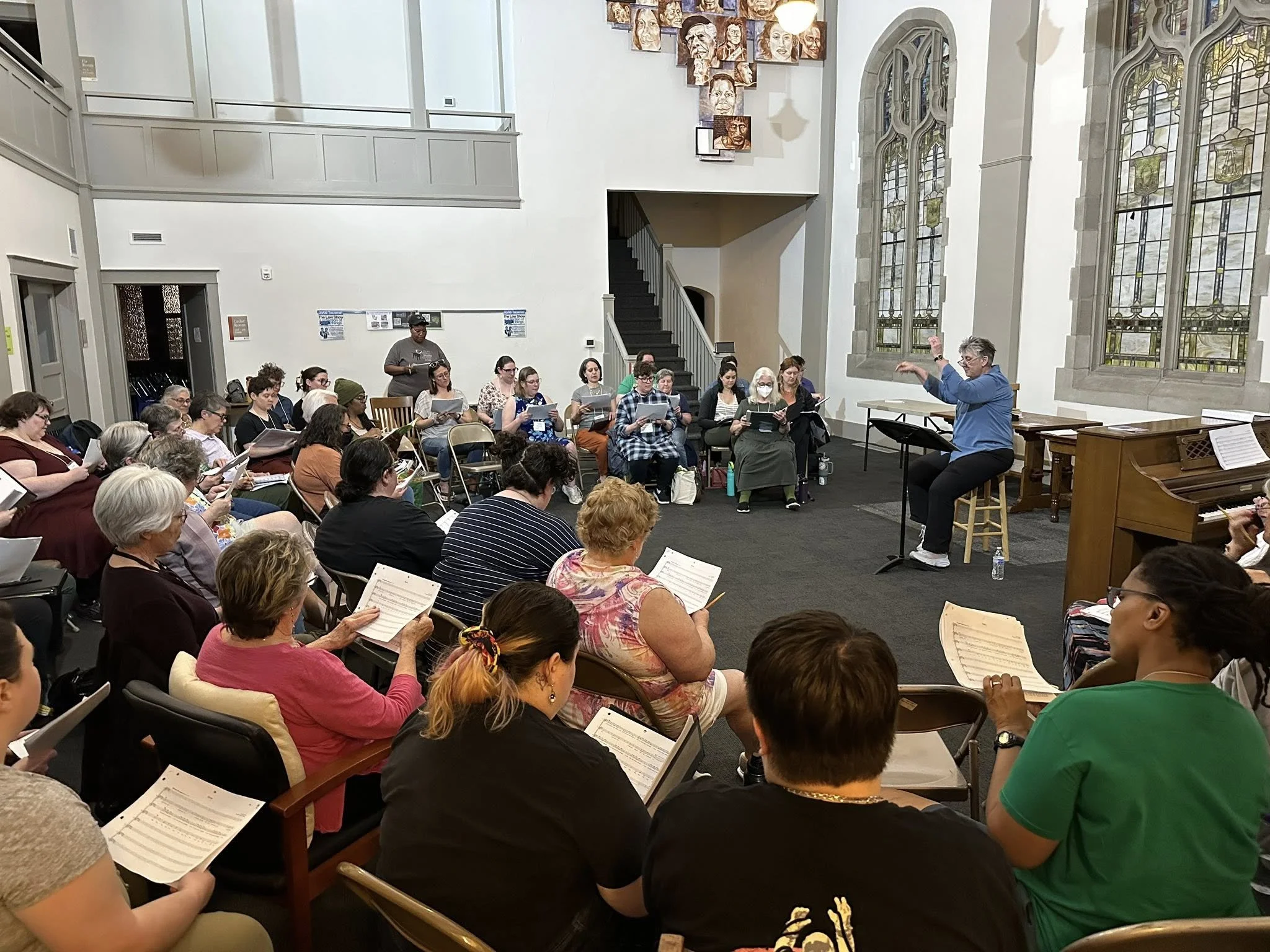 Fluidity is an adult SSAA Choir that embraces diversity and has a passion for building community. Artistic Director Rhonda Juliano started a Fluidity choir in Cincinnati years ago and brought the concept back when she returned to the Pacific Northwest. Fluidity of the South Sound started rehearsing in fall 2023 and took off when we started partnering with Trinity Presbyterian Church and the Bryant Community Center in January of 2024. We currently have over 50 singers from all over the region. Singers come from Anderson Island, Seattle, Enumclaw, Gig Harbor, Olympia, and the surrounding Puget Sound area.